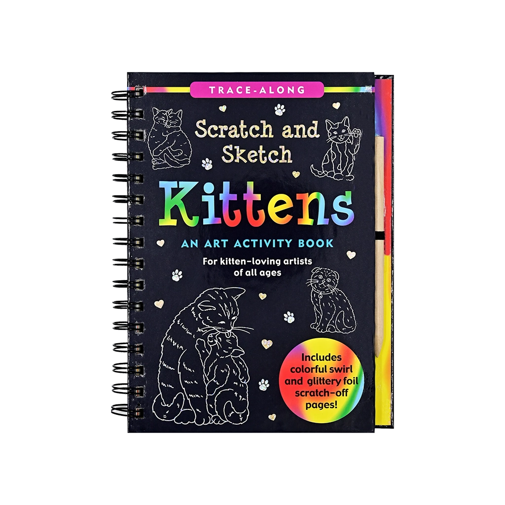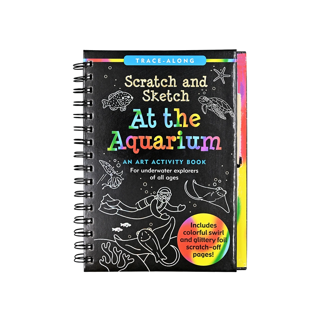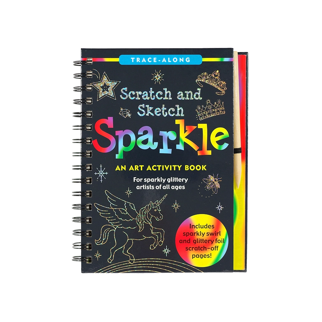 This is a Trace-Along Scratch and Sketch! White outlines on black scratch-off pages create a fun way for younger children to trace the pictures, revealing patterns, swirls, and holographic colors.