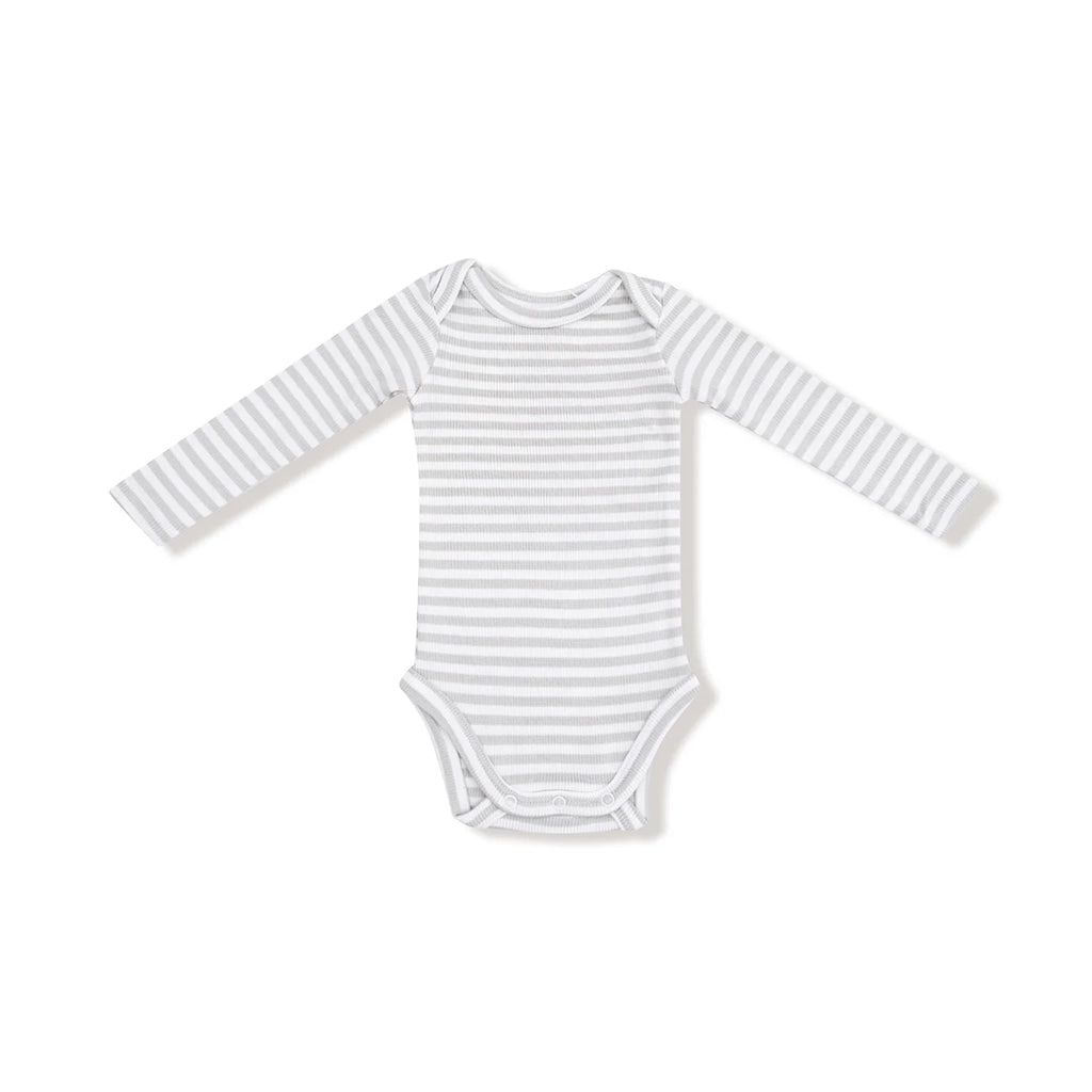 Ribbed Long Sleeve Bodysuit- Mineral Grey Stripe
