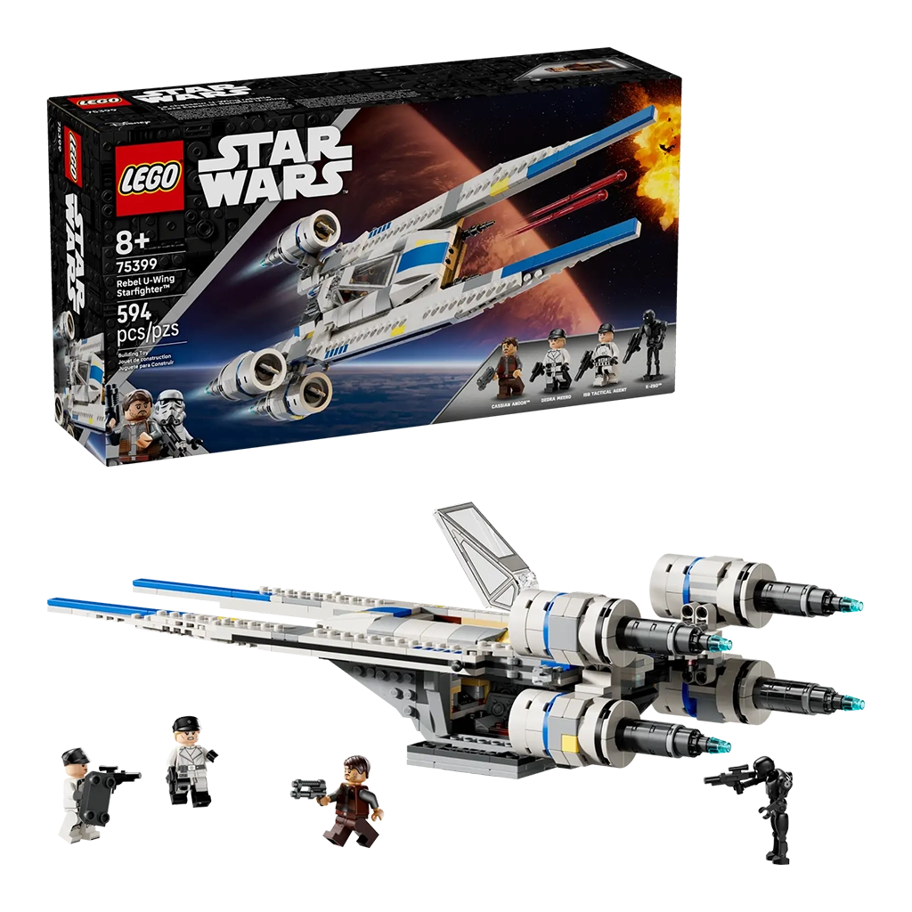 Kids team up with Cassian Andor and K-2SO to recreate Star Wars: Andor™ Season 2 scenes with this Rebel U-Wing Starfighter buildable model kit (75399). A playful holiday or birthday gift for boys, girls and any Star Wars™ fans aged 8 and up, the LEGO® brick-built U-wing starfighter toy features a swing-wing function to adjust the wings from landing mode into the iconic ’V’ formation for flight, plus 2 spring-loaded shooters. The canopy of the cockpit is released by pressing a lever and there isan opening compartment for passengers and cargo.