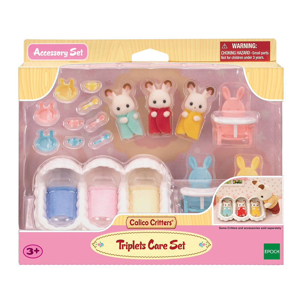 An accessory set designed to pick up and play. includes exclusive hopscotch rabbit cradle triplets phillip, flora and fauna along with 19 pieces of nursery furniture and accessories.