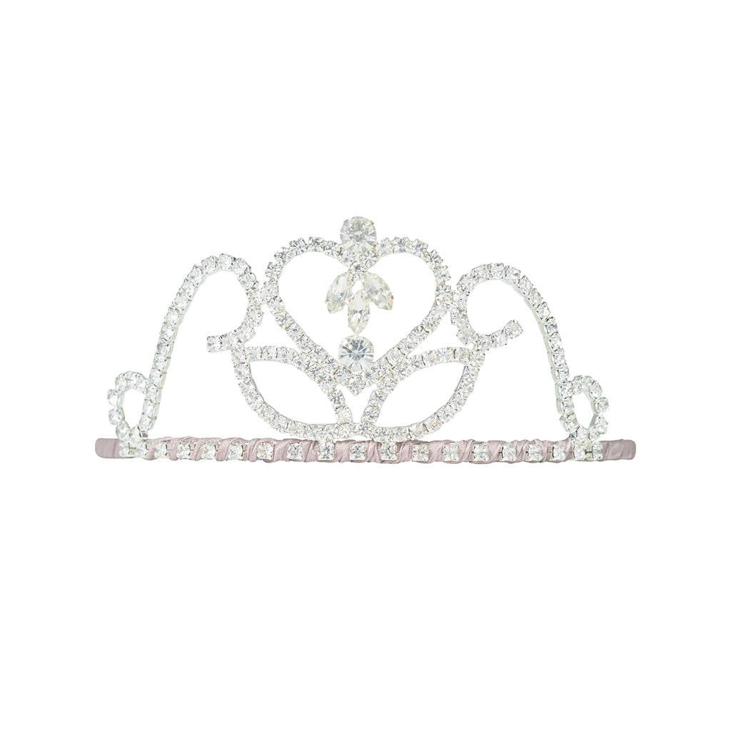 - Beautifully crafted tiara features a soft pink, ribbon-wrapped band and sparkling diamanté stones set in an intricately detailed design