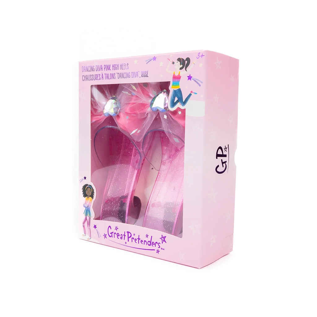 Strut, sparkle, and shine in the Dancing Diva Pink High Heels – the ultimate shoes for every little glam queen! Crafted from a light pink, see-through material, these playful heels add a touch of magic to any dress-up look.