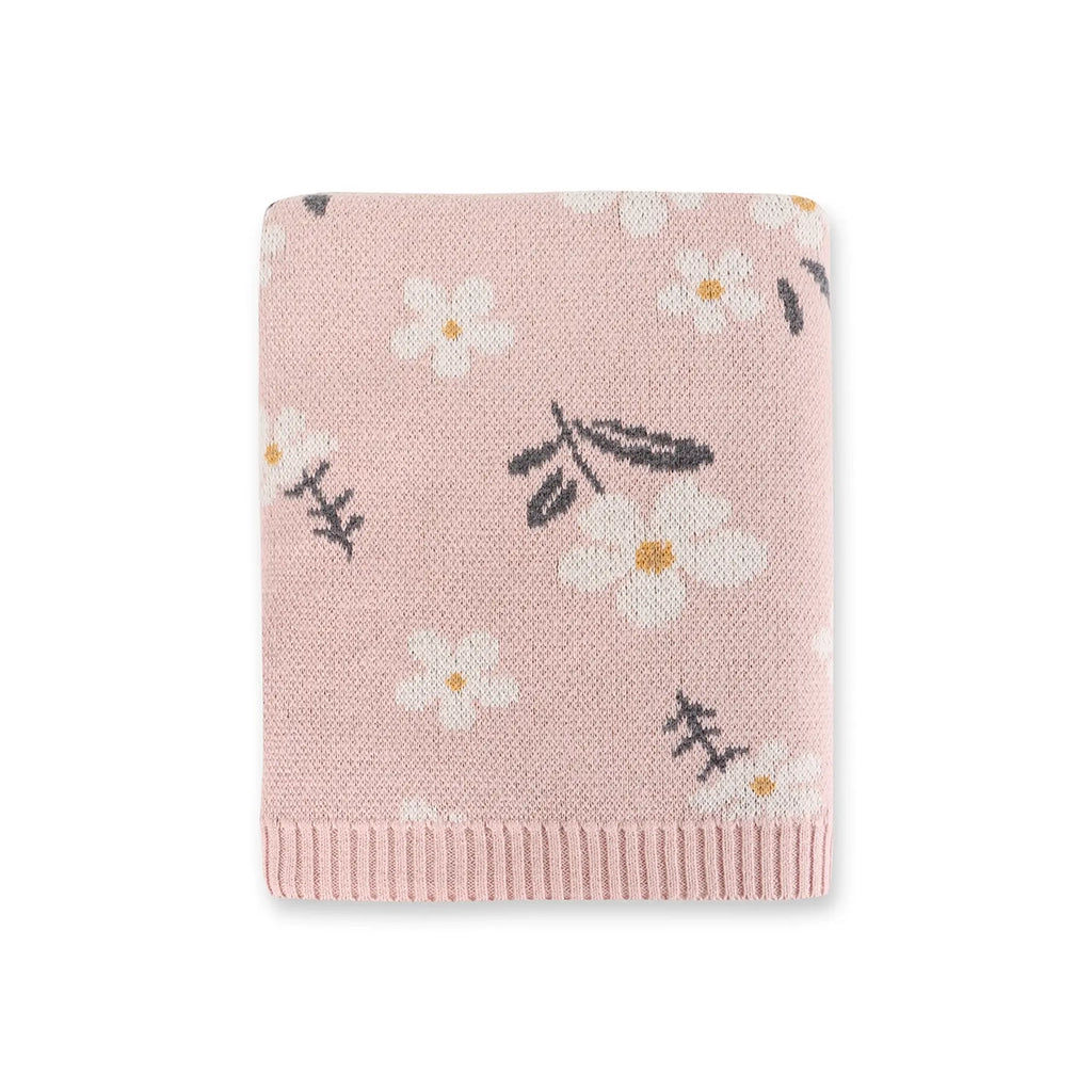 Organic Jacquard Knit Baby Blanket- Daisy Floral