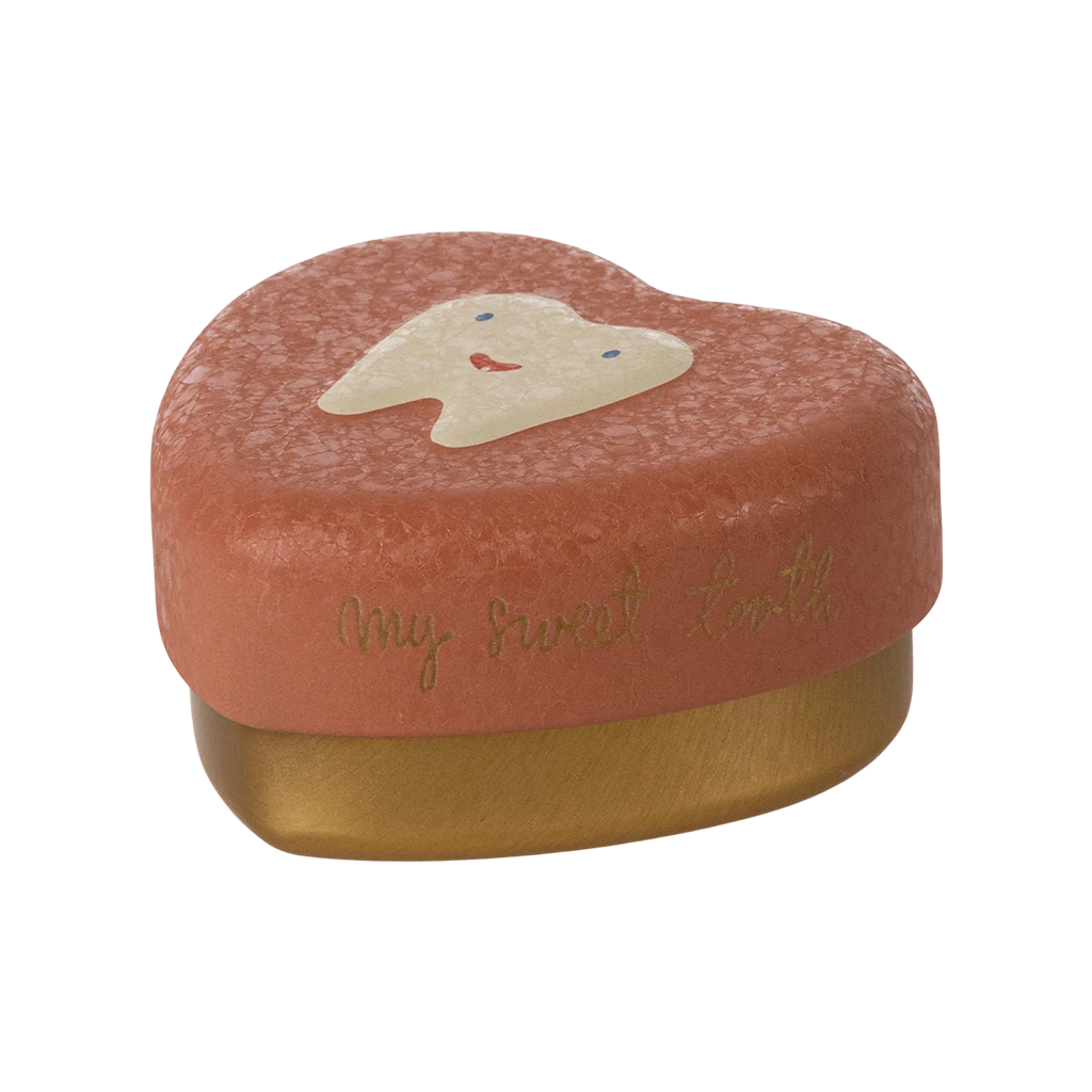 This metal heart is the perfect place to store small teeth to ensure childhood memories will last. The box has a lovely tooth embossment and special crackled surface on lid.