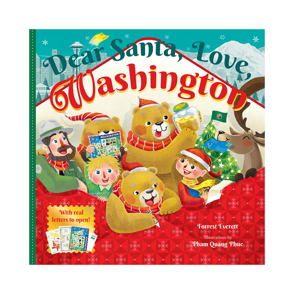 Santa is all ready to leave on Christmas Eve, but last-minute letters are arriving from Washington! From a little girl who is wishing for more sunshine to some mischievous bears inviting the reindeer over for a playdate, each letter contains a humorous request that gets even Santa chuckling. Even better, each letter comes tucked in its own pocket envelope with other delightful extras like cards, money for toll roads, and even a map of Washington! How will Santa respond? It's Washington Christmas magic you'll have to see!