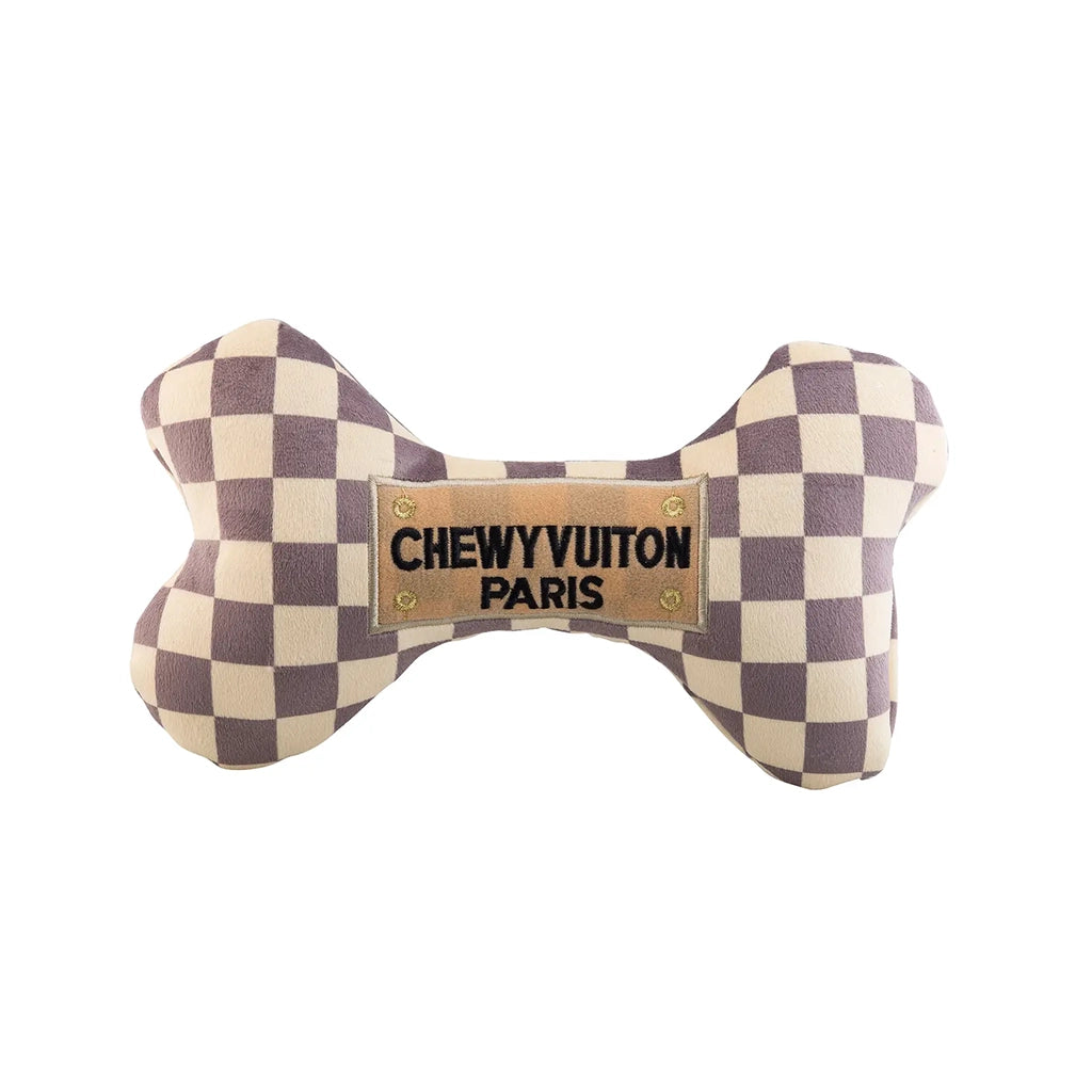 Does your haute-couture hound need a toy that’s as stylish as they are? Then look no further than the Chewy Vuiton Checker Bone Toy! It features the iconic checkered pattern that every furry fashionista drools over. The soft plush exterior provides the perfect surface to really sink their teeth into. And when they do, they’ll discover the delightful hidden squeaker inside!