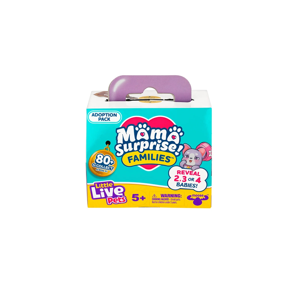 Discover adorable surprises with the Mama Surprise Families Adoption Pack from Little Live Pets! Open the puppy carrier to reveal 2, 3, or even 4 cute baby puppies, each with unique poses and expressions. If you find 2 or 3 babies, you’ll also uncover a surprise toy accessory! With 8 puppy families to collect, kids can build their own puppy world. Don’t miss the Limited Edition Golden Retriever family! Each pack includes 3–4 babies, a collector’s guide, sticker sheet, and more. Add new members to your Mama’s House and complete your puppy family collection!