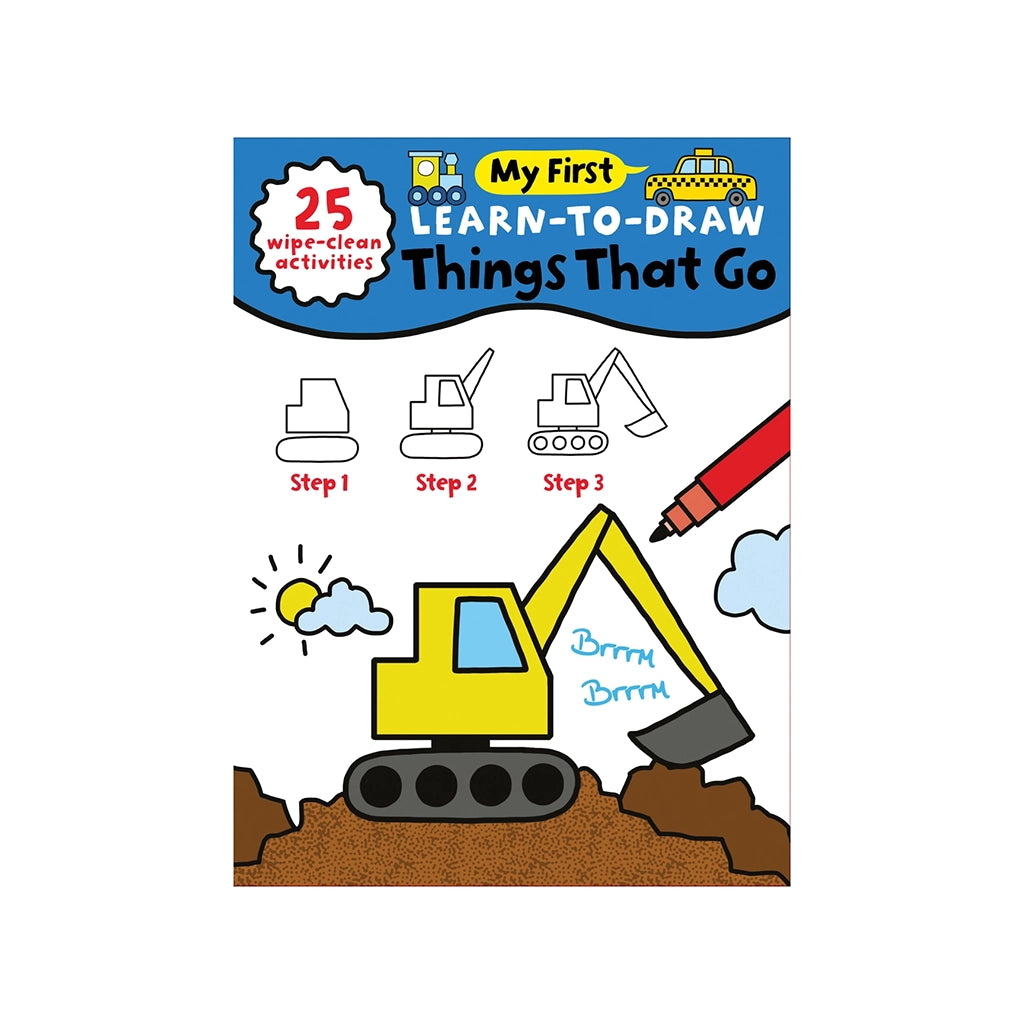 Help your little one vroom into learning how to draw with easy-to-follow wipe-clean activities. A unique way to encourage creativity and teach drawing skills while helping children develop important motor skills and hand-eye coordination. Little ones will love following the simple steps to create drawings of their favorite "things that go." The perfect way to inspire your budding artist!