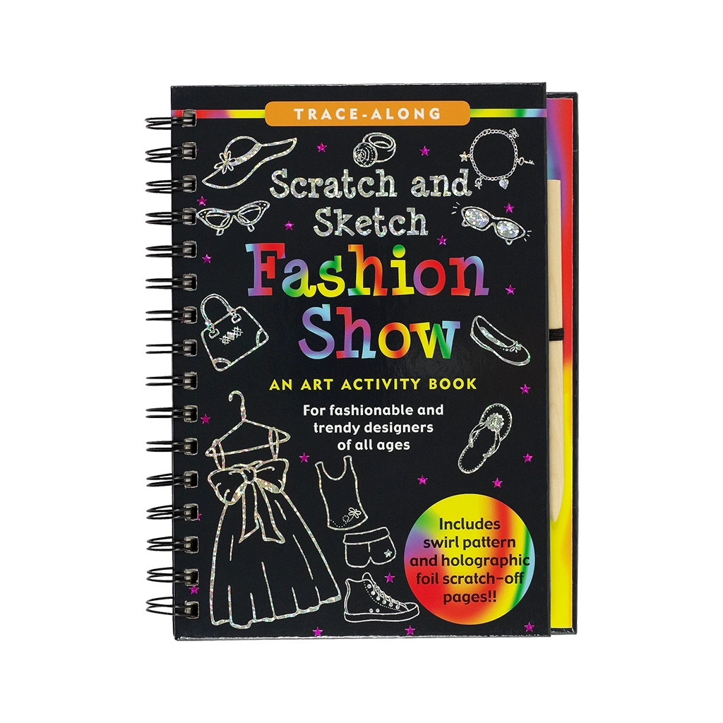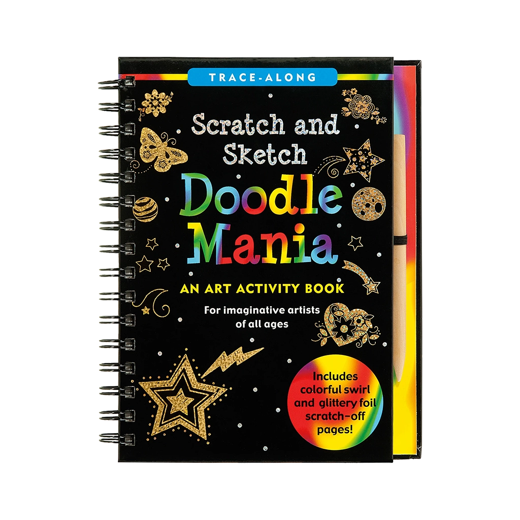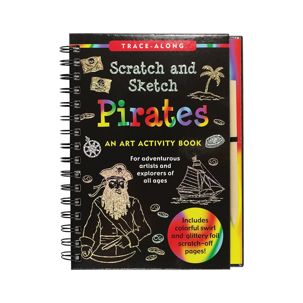 This is a Trace-Along Scratch and Sketch! White outlines on black scratch-off pages create a fun way for younger children to trace the pictures, revealing patterns, swirls, and holographic colors.