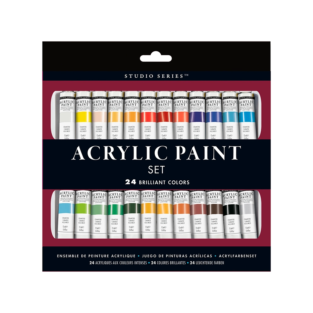Here is a compact yet complete full palette of acrylic paints that's perfect for artists, students, and crafters!